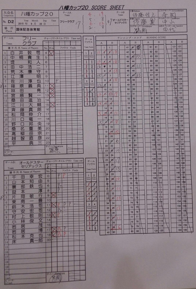 佐川さん抜け、林田さん負傷。 さらに、こちら2戦目相手1戦目という圧倒的不利な状況で、 十分善戦したと思います。 詳細スコア (参加者:江澤、荒木、松岡、桑田、斉藤、白井、中桐、宮原、林田、江川、篠原) |