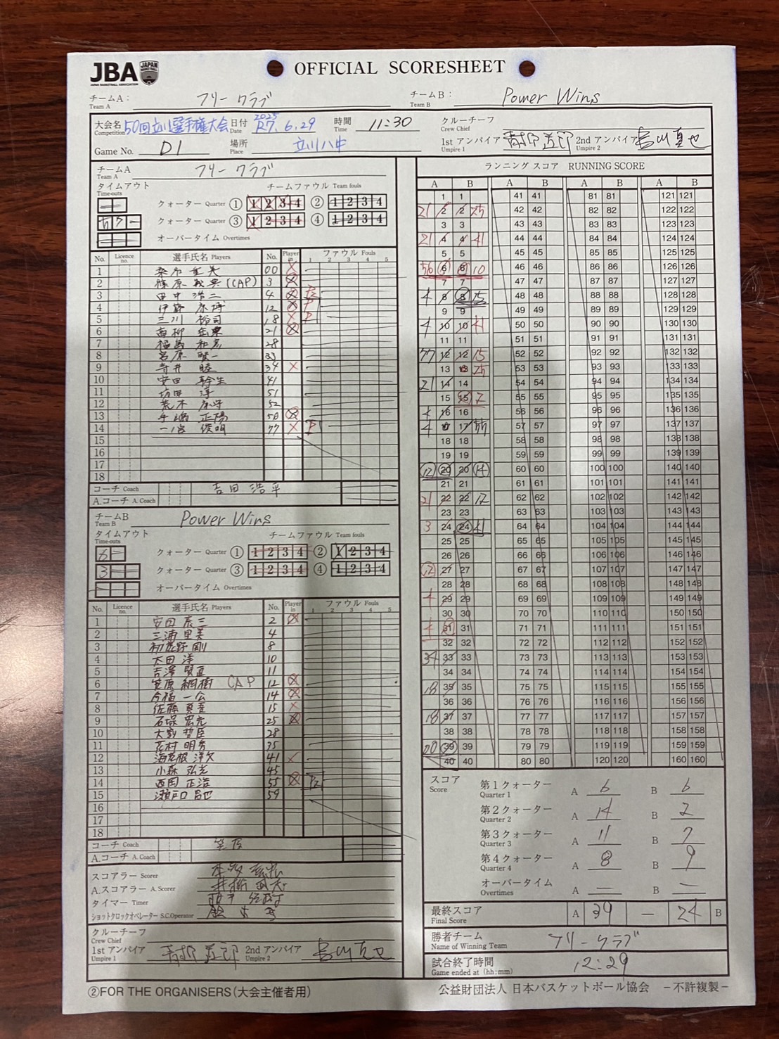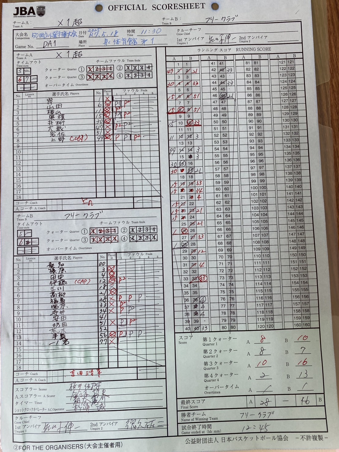 オフェンスはあまり良くなかったものの、ディフェンスは機能していたので、優勝を摘み取りました。 詳細スコア, 動画 (参加者:桑名、吉田、高柳、伊藤、寺井、一ノ宮、三川、篠原、手島、なべ、塩見) |